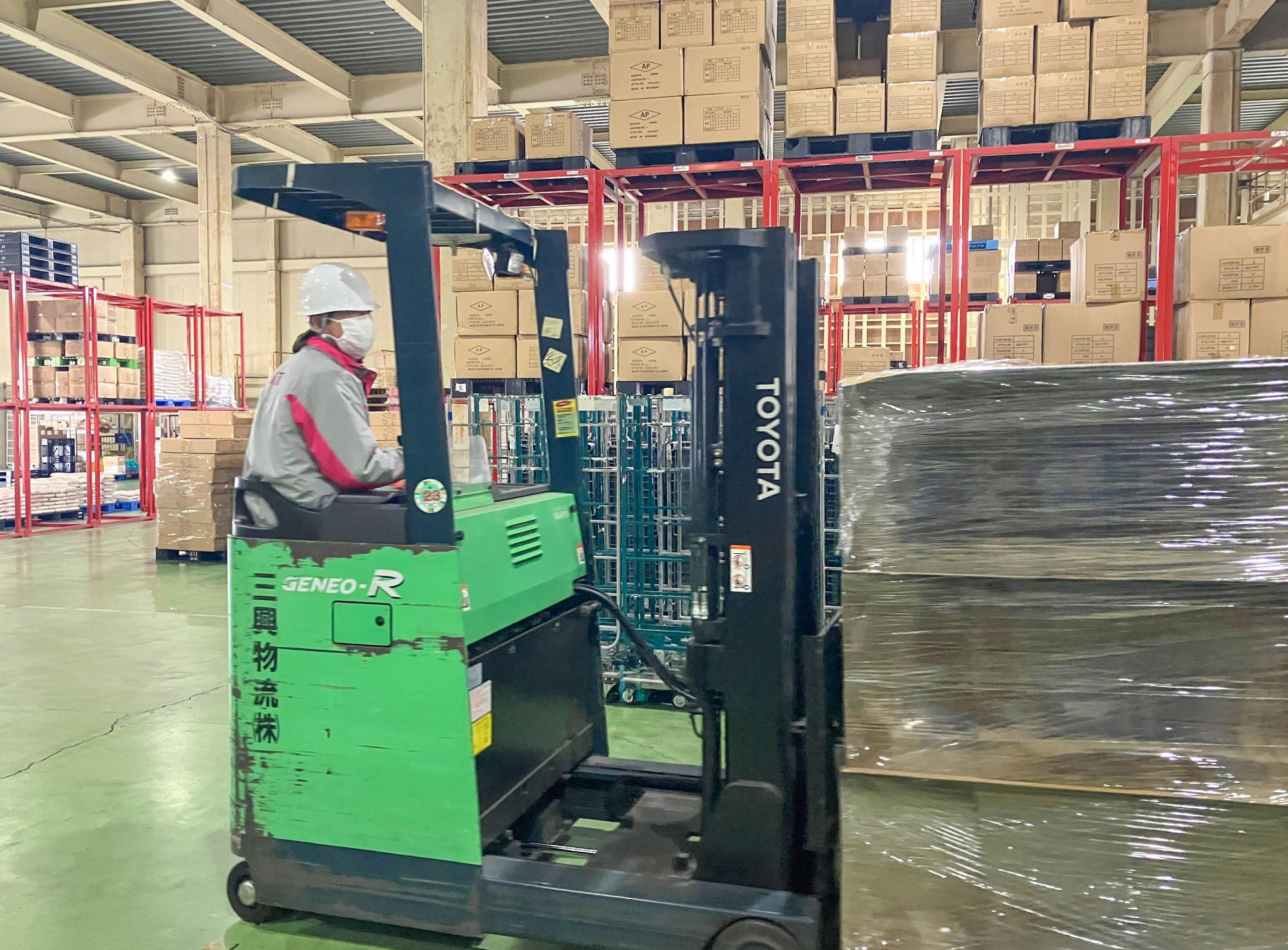 - 広い倉庫内で日用品のピッキング